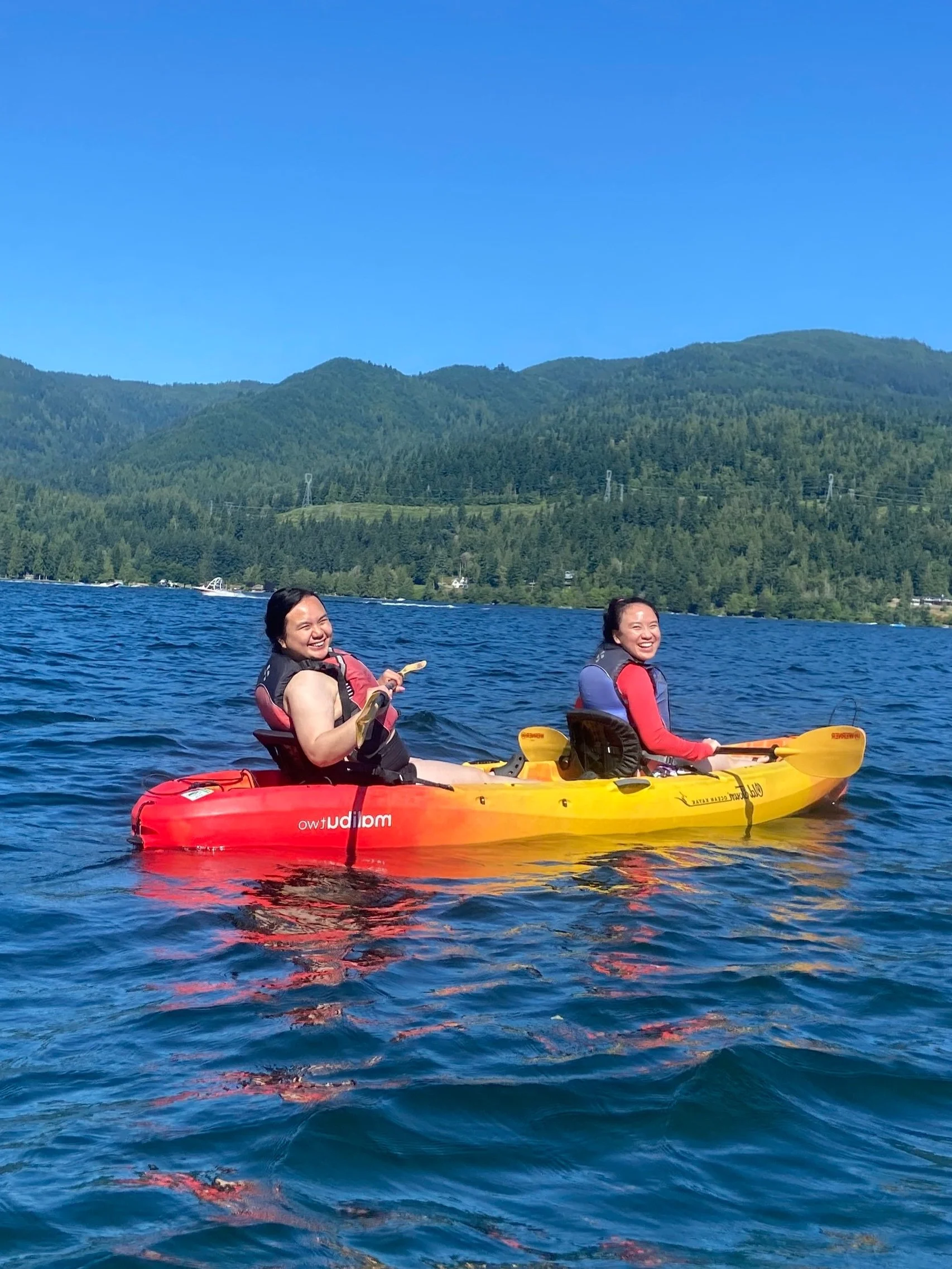 Mentors Ngoc Chau and Minh Chau go kayaking on Lake Whatcom