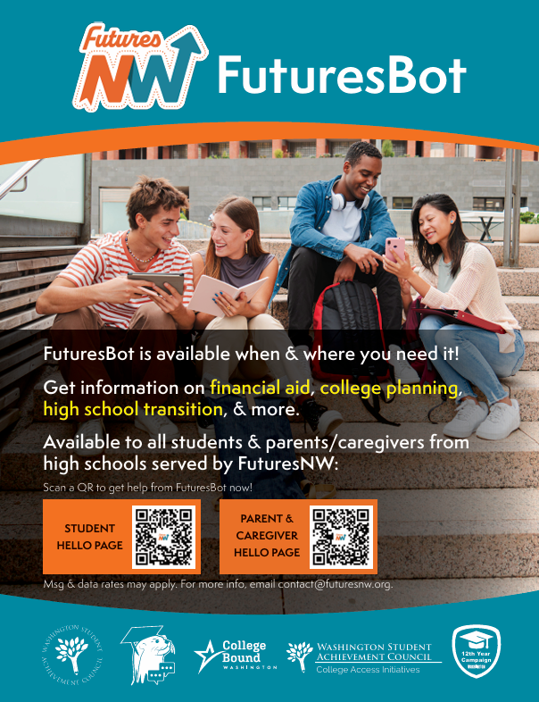 Get one-on-one support (scholarships, college applications, and Financial Aid applications) from a FuturesNW team member by booking a meeting here: BOOK A SUPPORT SESSION — FuturesNW